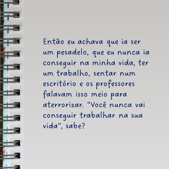 Em retrospecto, considero que aquele período não nos ajudou. Cinicamente, acrescentaria: pelo menos não nos atrapalhou. Olhando para a frente, sigo a jornada desejando uma educação em que talentos não se revelem apesar dela, mas através dela. E agradeço por ter escolhido - por pura obra do acaso - abraçar profissionalmente um caminho que me permite contribuir para isso.